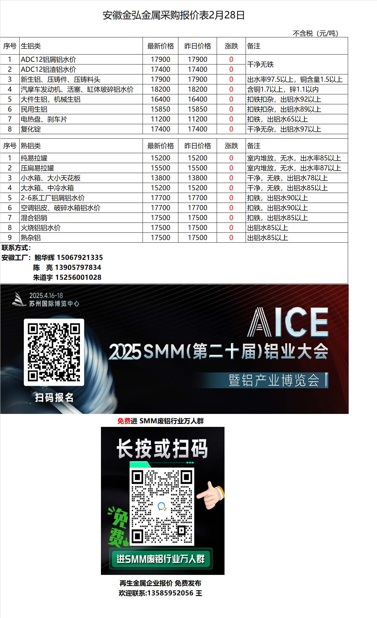 2月28日安徽金弘 废铝采购报价
