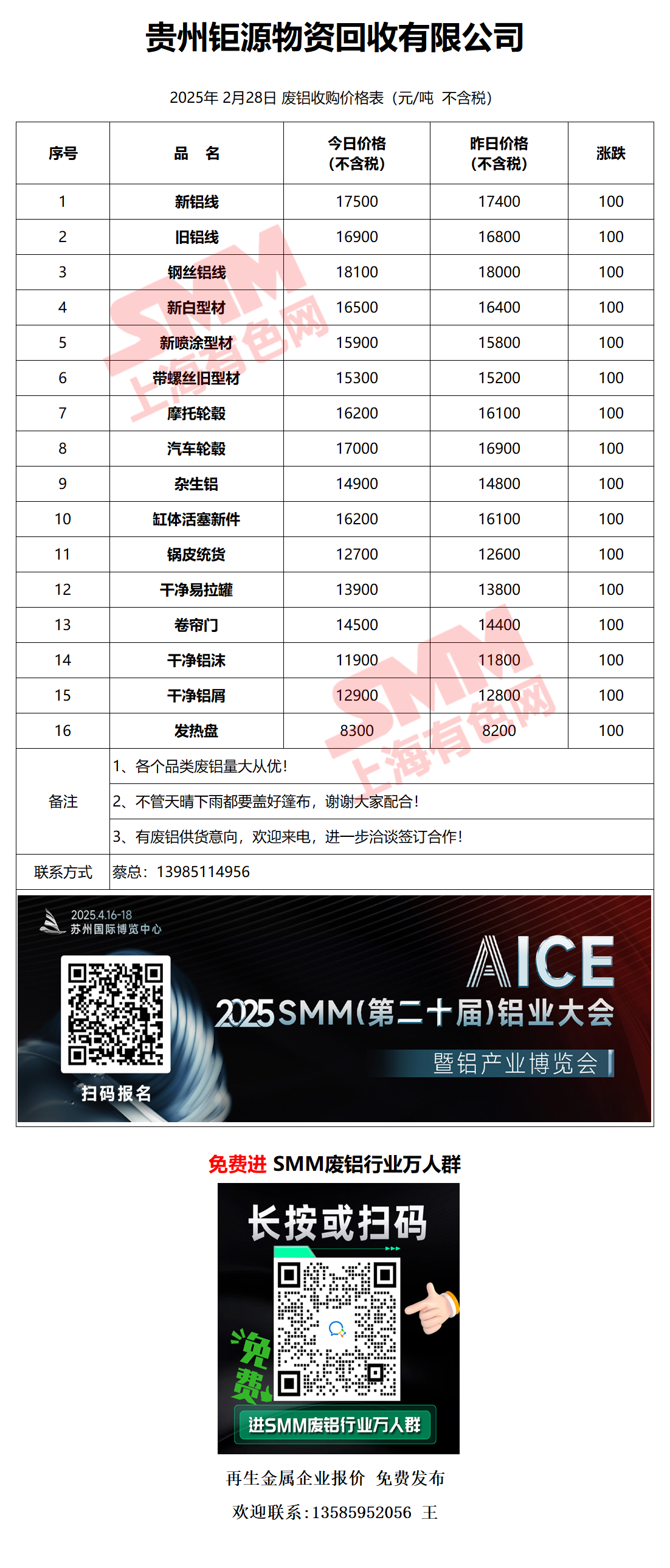 2月28日贵州钜源 废铝采购报价