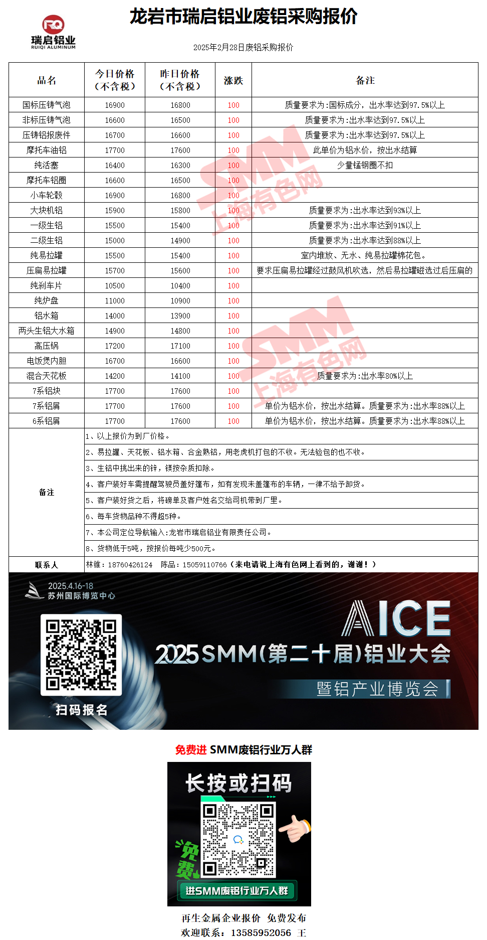 今日龙岩瑞启 废铝采购报价已更新,有货的朋友欢迎联系我们!