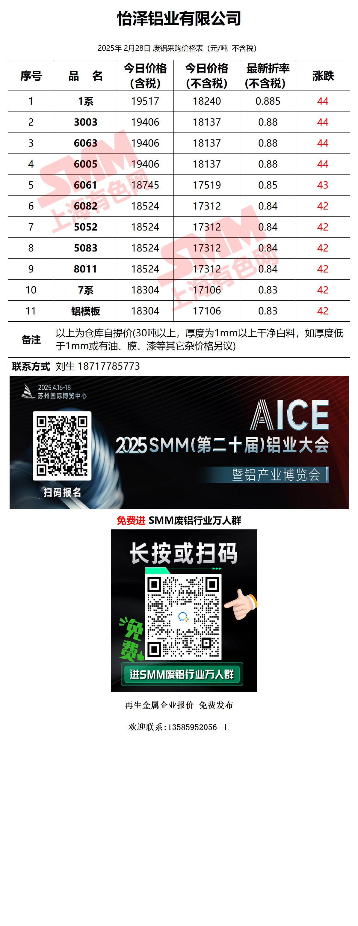 今日怡泽铝业 废铝采购报价已更新,有货的朋友欢迎联系我们!