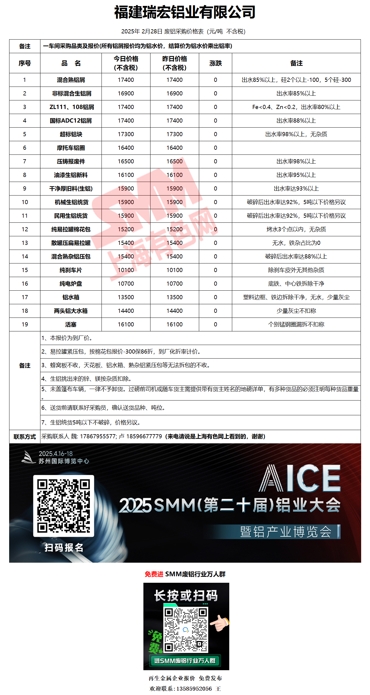 今日福建瑞宏 废铝采购报价已更新,有货的朋友欢迎联系我们!