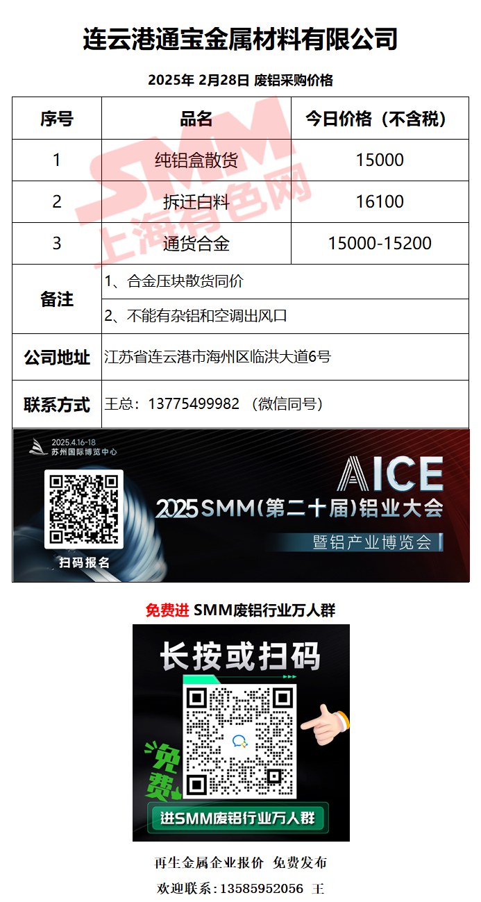 今日连云港通宝 废铝采购报价已更新,有货的朋友欢迎联系我们!