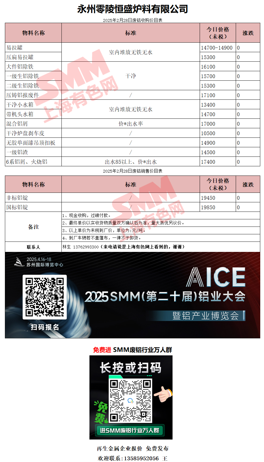2月28日湖南恒盛 废铝采购报价