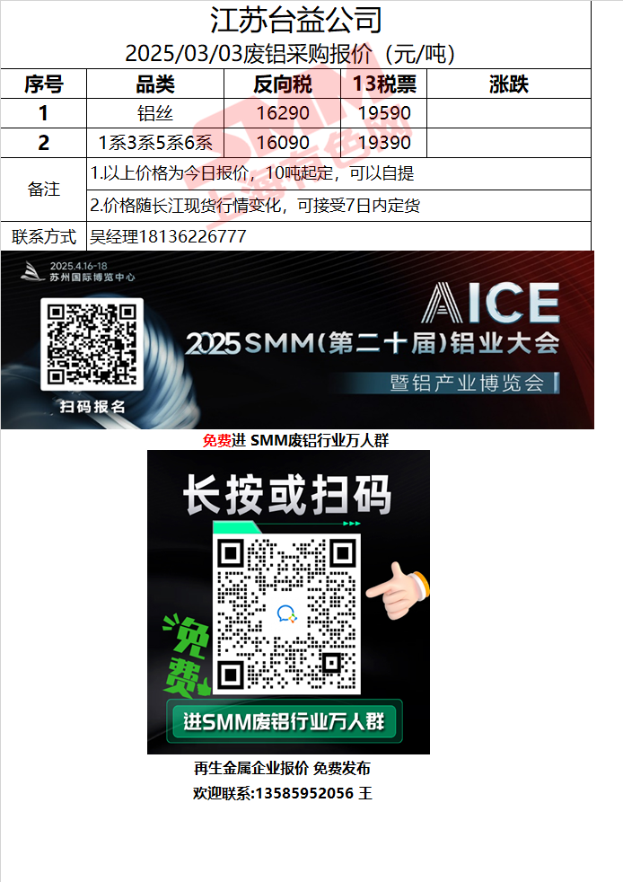 3月3日江苏台益 废铝采购报价