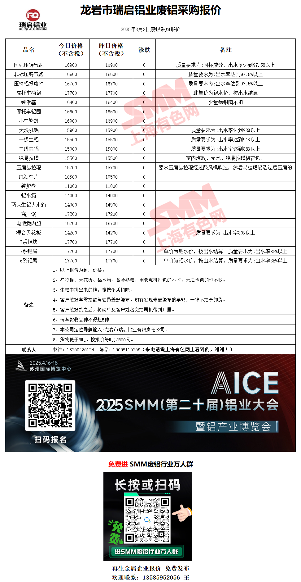 今日龙岩瑞启 废铝采购报价已更新,有货的朋友欢迎联系我们!