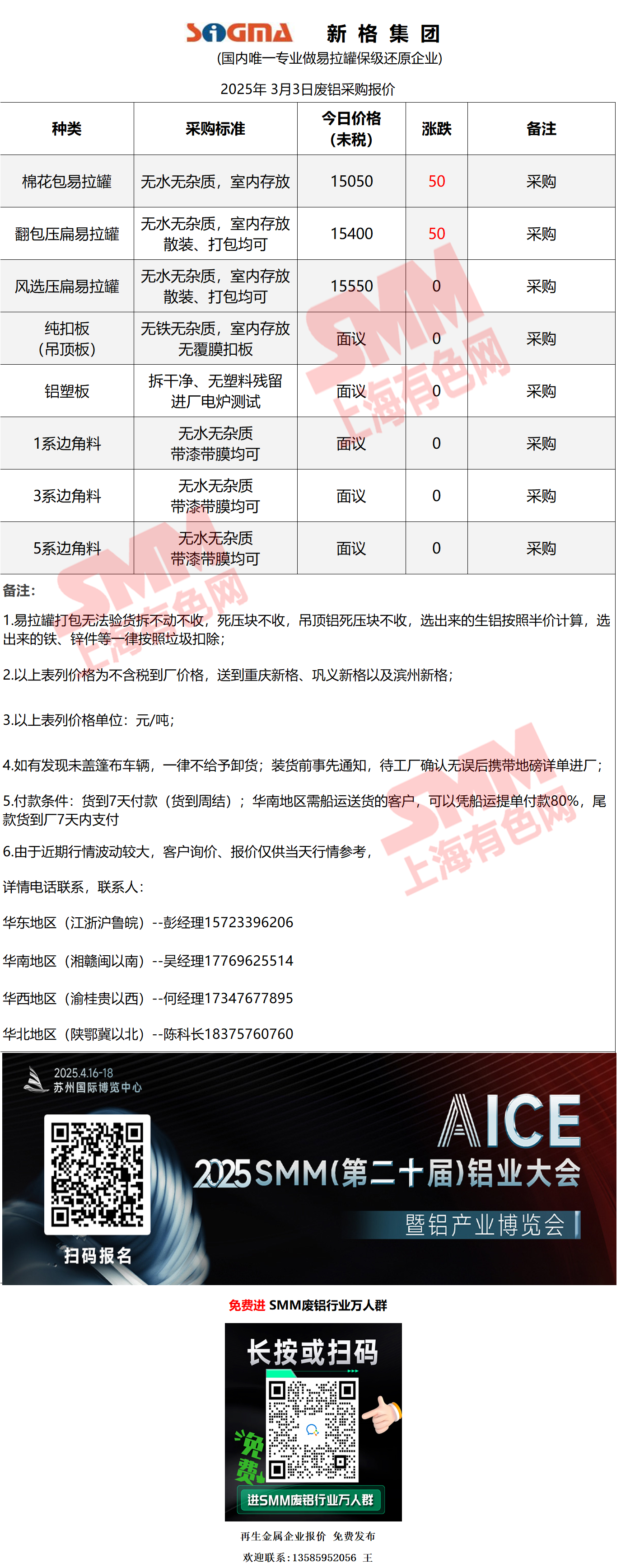 今日新格集团 废铝采购报价已更新,有货的朋友欢迎联系我们!