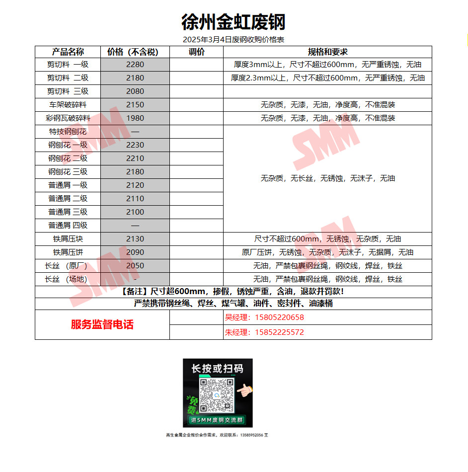 今日徐州金虹 废钢收购报价已更新,有货的朋友欢迎联系我们!