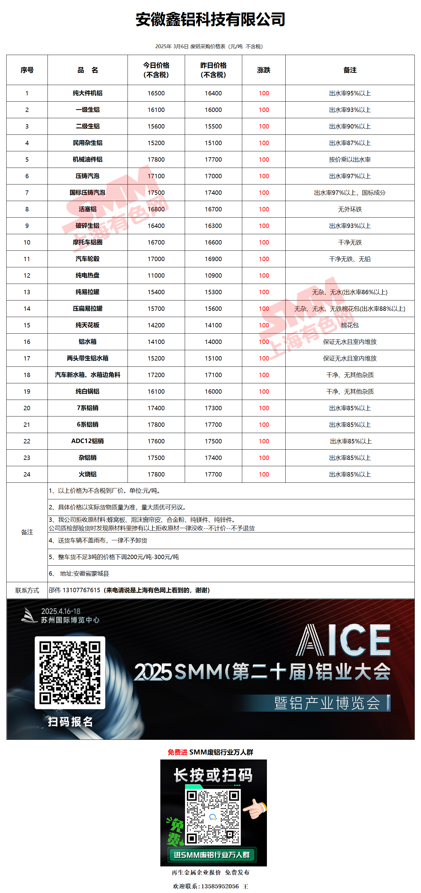 今日安徽鑫铝 废铝采购报价已更新,有货的朋友欢迎联系我们!