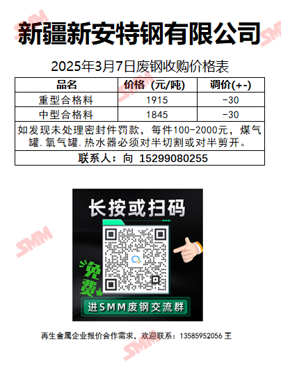 3月7日新安特钢 废钢收购报价