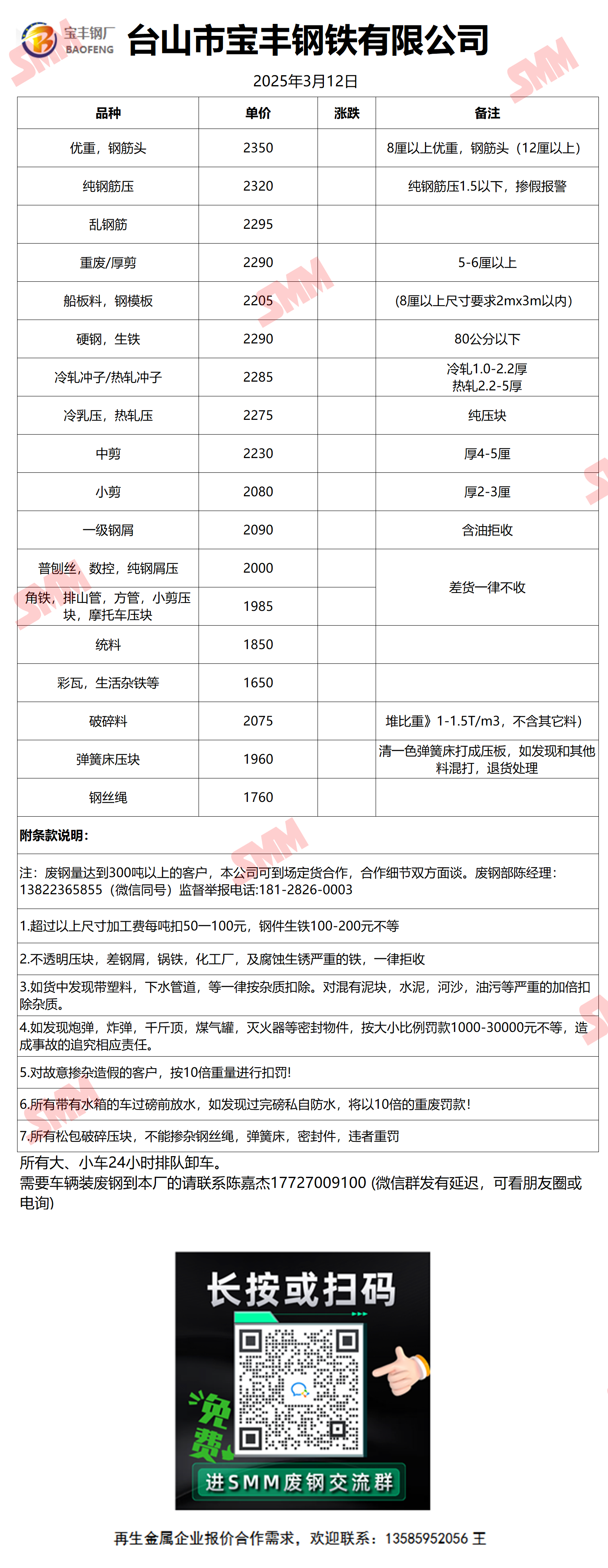 3月12日宝丰钢铁 废钢收购报价