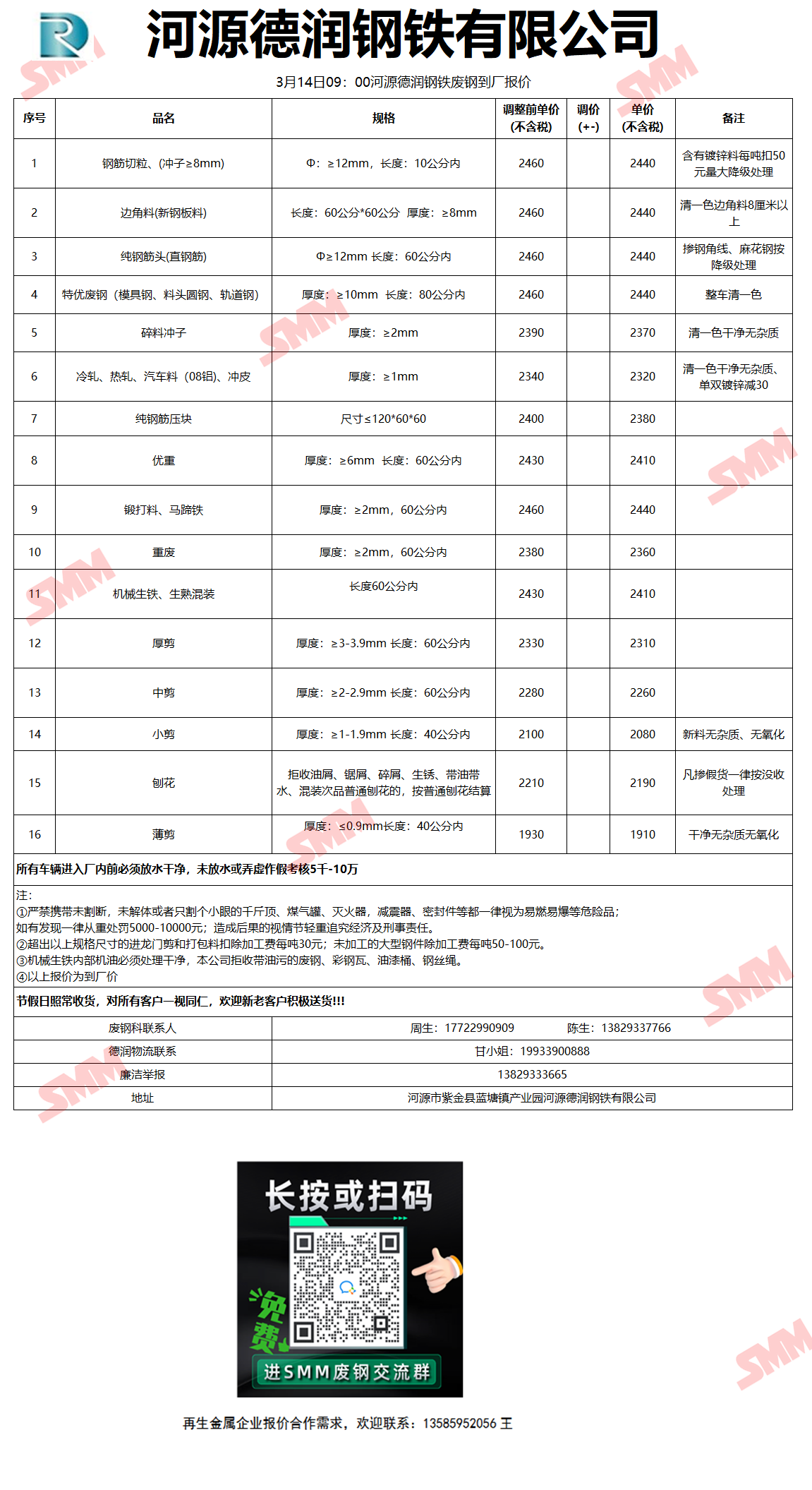 今日河源德润 废钢收购报价已更新,有货的朋友欢迎联系我们!