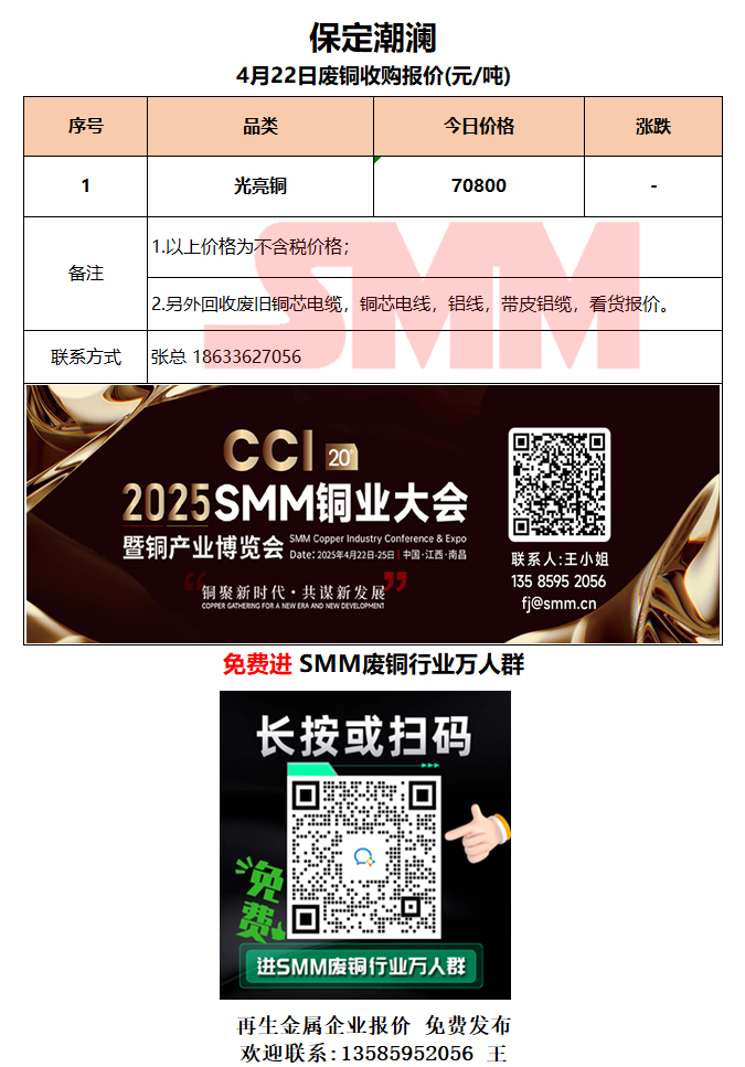 4月22日保定潮澜 废铜采购报价