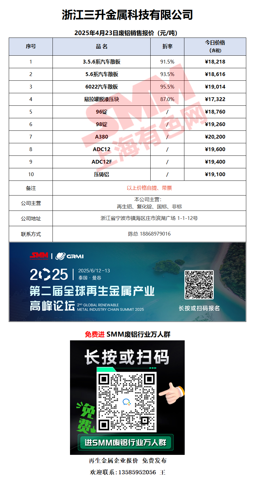 4月3日上海沪闽&福建沪鑫 废铝采购报价