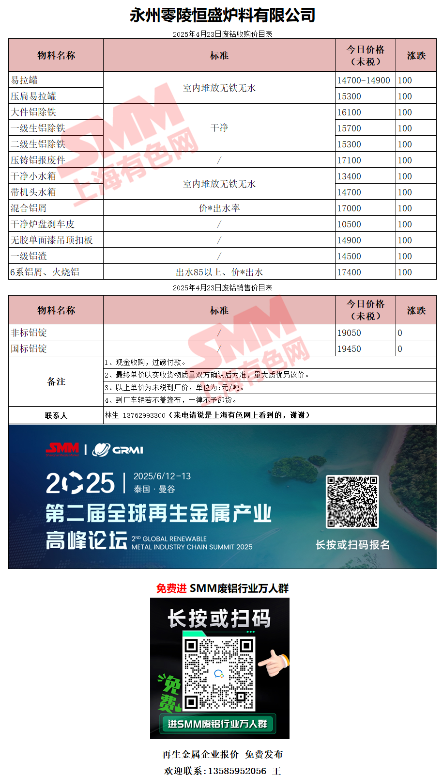今日湖南恒盛 废铝采购报价已更新,有货的朋友欢迎联系我们!
