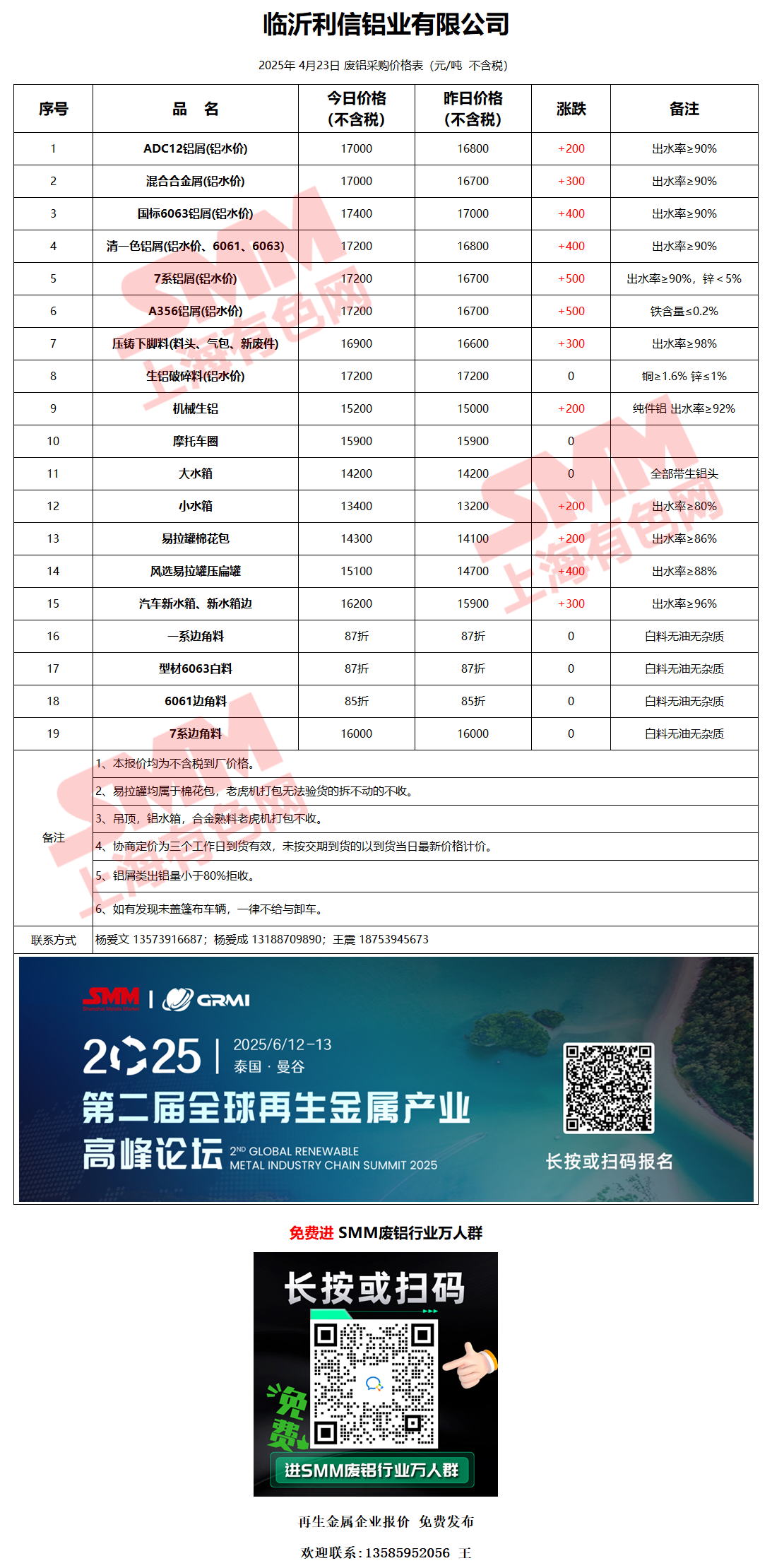 4月23日临沂利信 废铝采购报价