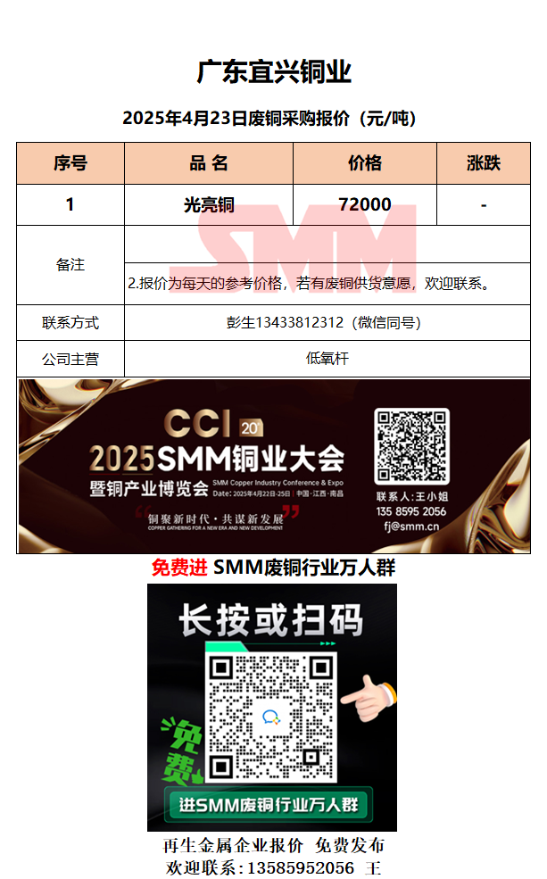 4月23日广东宜兴 废铜采购报价