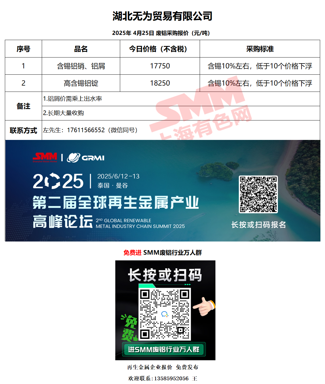 今日湖北无为 废铝采购报价已更新,有货的朋友欢迎联系我们!