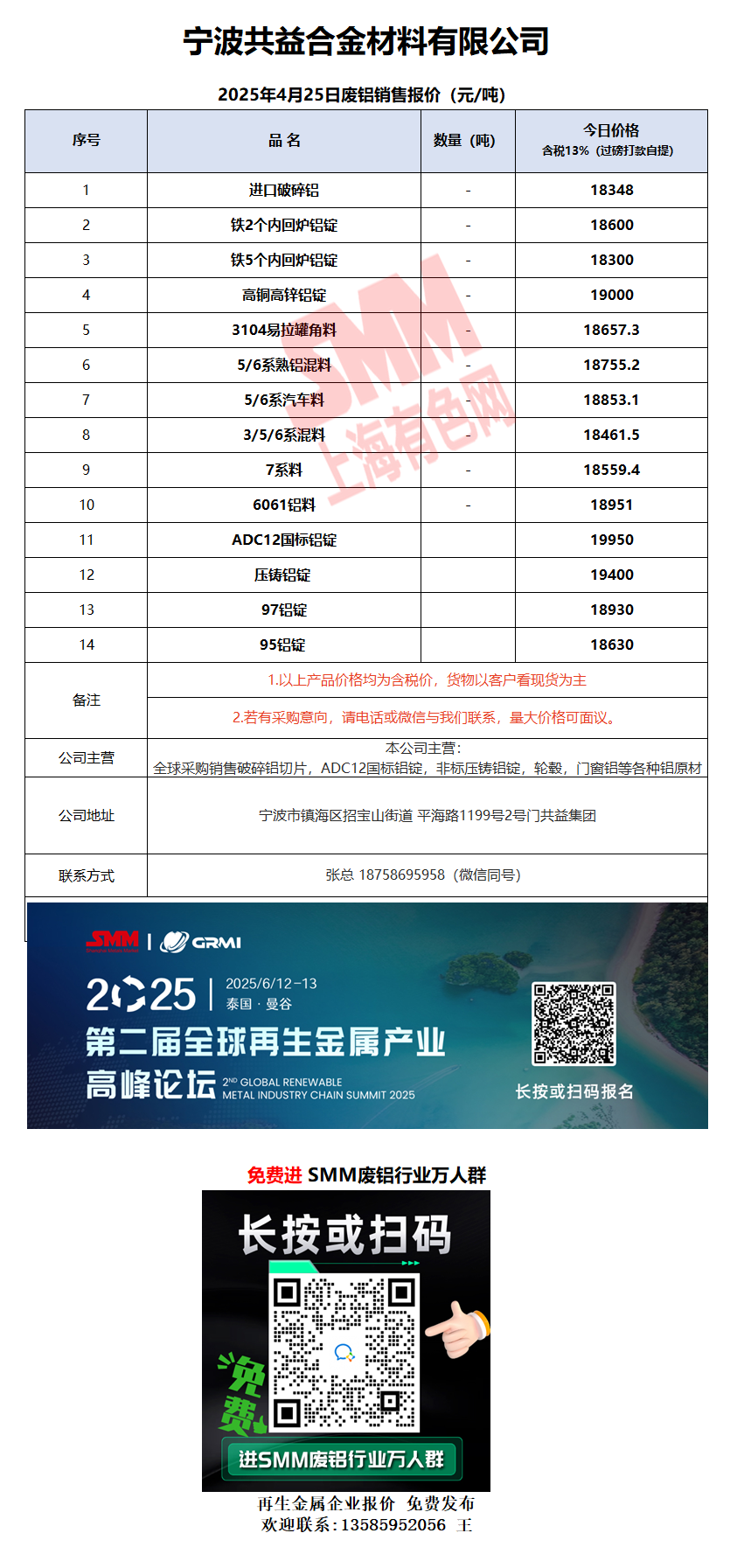 今日宁波共益 废铝销售报价已更新,有货的朋友欢迎联系我们!