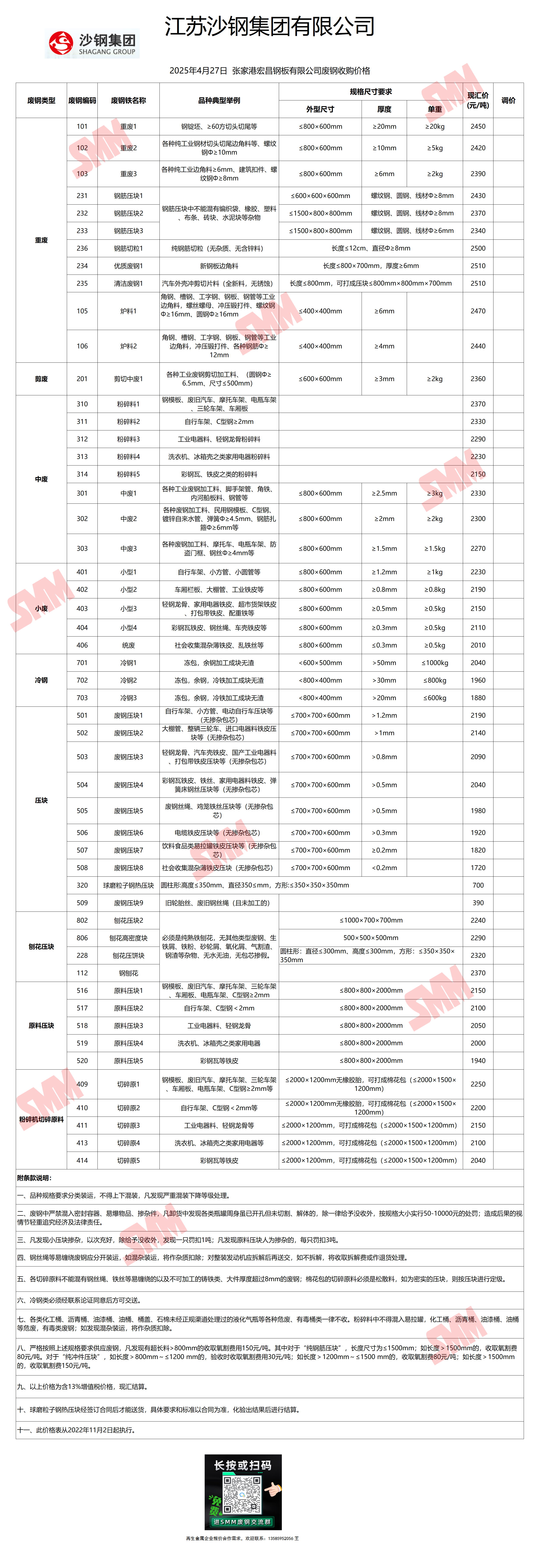 今日沙钢张家港基地 废钢收购报价已更新,有货的朋友欢迎联系我们!