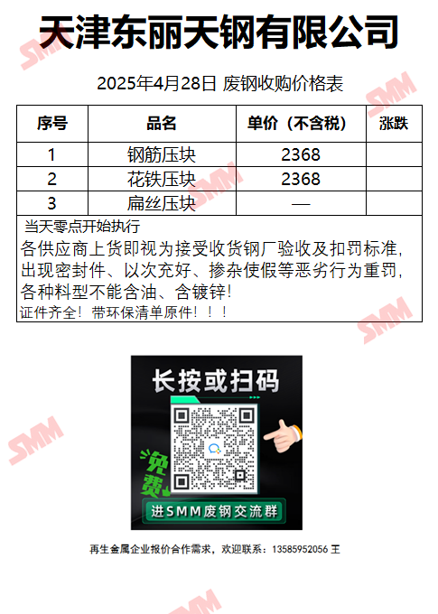 今日天津东丽天钢 废钢收购报价已更新,有货的朋友欢迎联系我们!