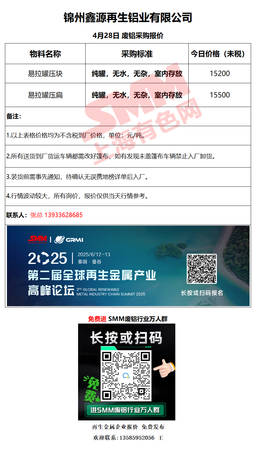今日锦州鑫源 废铝采购报价已更新,有货的朋友欢迎联系我们!