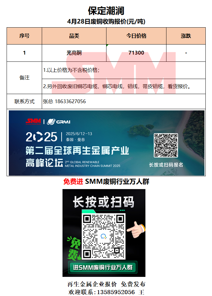 今日保定潮澜 废铜采购报价已更新,有货的朋友欢迎联系我们!