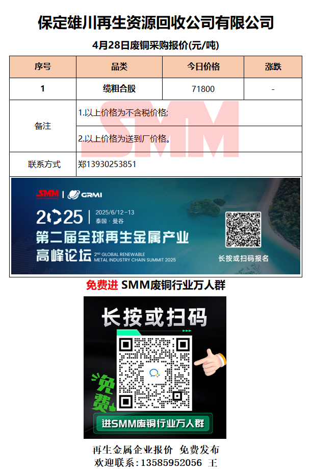 今日保定雄川 废铜采购报价已更新,有货的朋友欢迎联系我们!