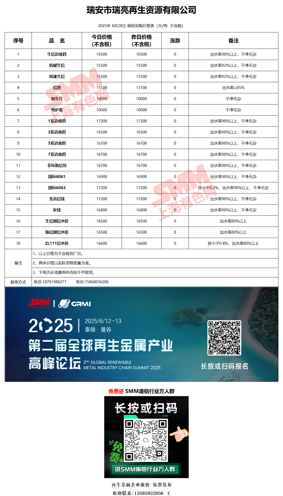 4月28日瑞亮再生 废铝采购报价