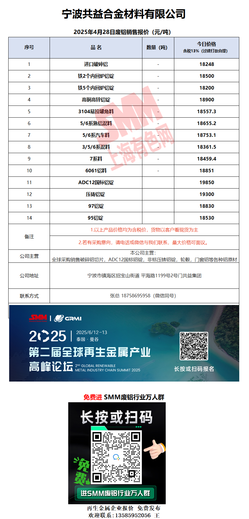 4月28日宁波共益 废铝销售报价