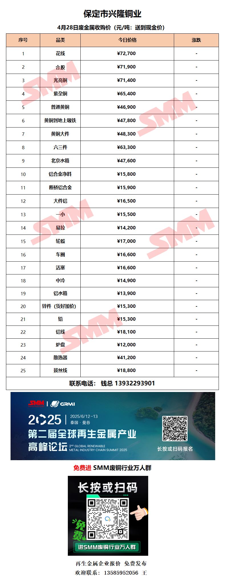 4月28日保定兴隆铜业 废铜采购报价