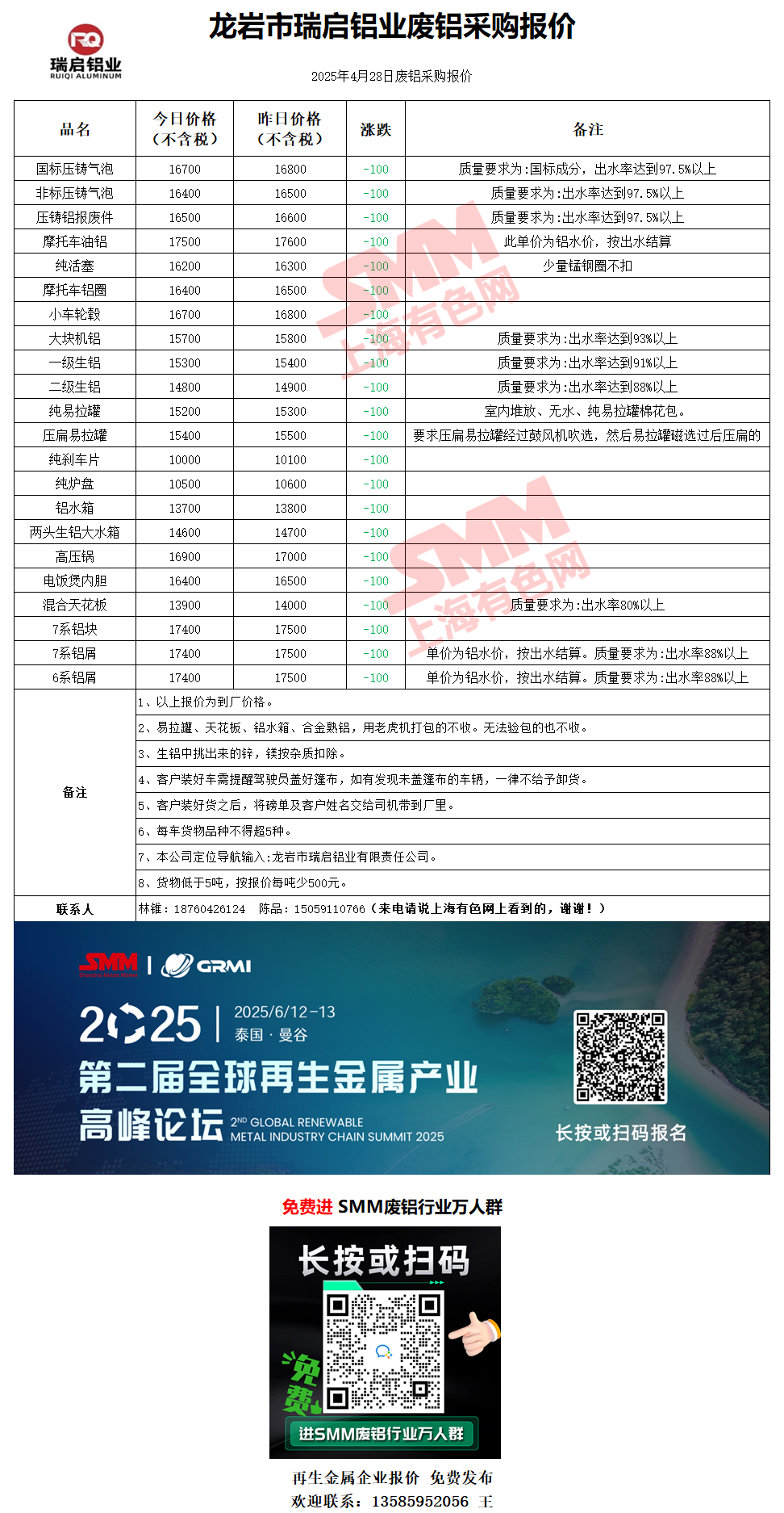 今日龙岩瑞启 废铝采购报价已更新,有货的朋友欢迎联系我们!