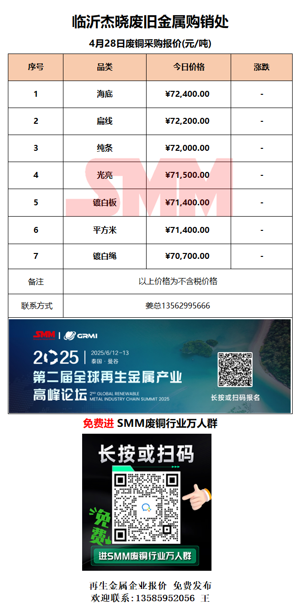 4月28日临沂杰晓 废铜采购报价