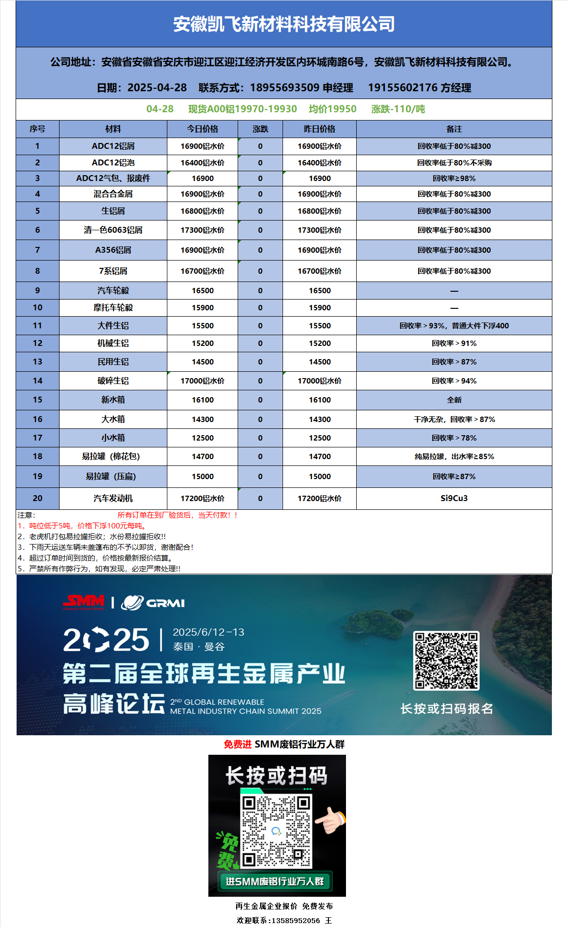 4月28日安徽凯飞 废铝采购报价