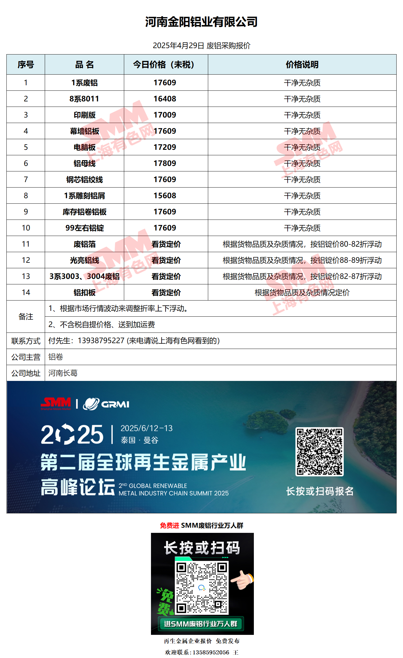 4月29日河南金阳铝业 废铝采购报价