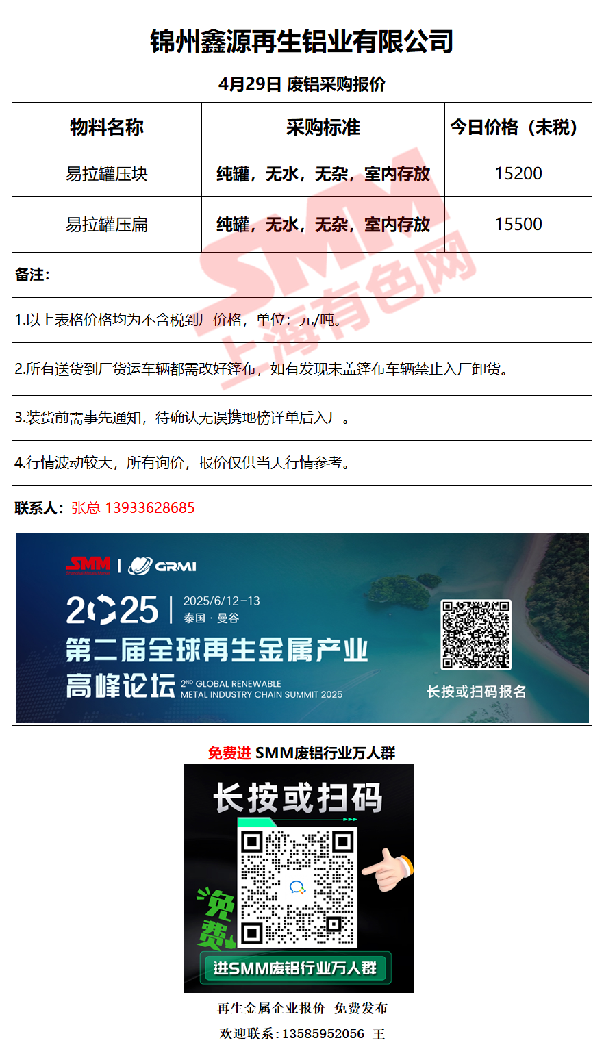 今日锦州鑫源 废铝采购报价已更新,有货的朋友欢迎联系我们!