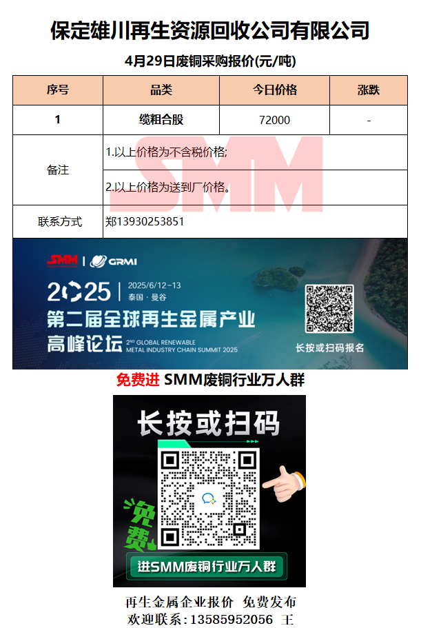 今日保定雄川 废铜采购报价已更新,有货的朋友欢迎联系我们!