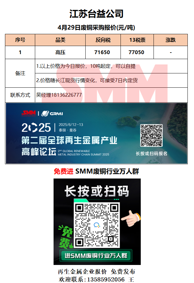 今日江苏台益 废铜采购报价已更新,有货的朋友欢迎联系我们!