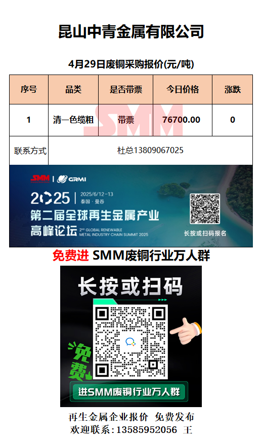 今日昆山中青 废铜采购报价已更新,有货的朋友欢迎联系我们!