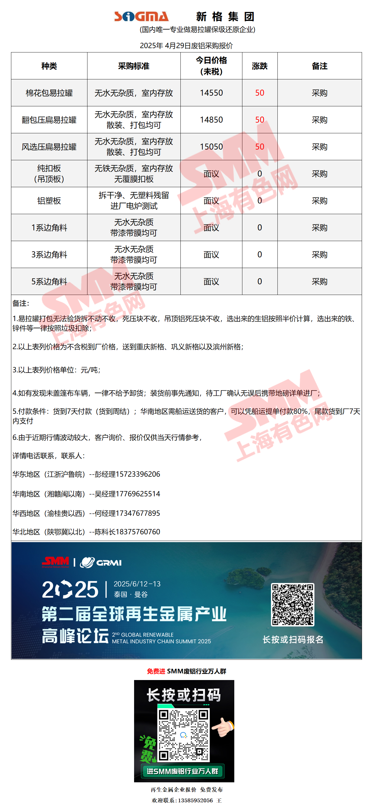 4月29日新格集团 废铝采购报价