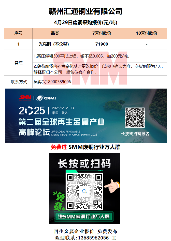 今日赣州汇通 废铜采购报价已更新,有货的朋友欢迎联系我们!