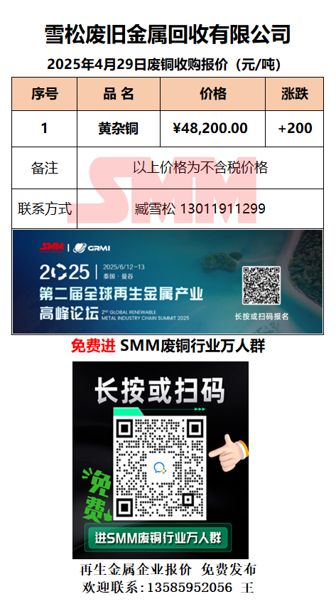 4月29日雪松废旧 废铜采购报价
