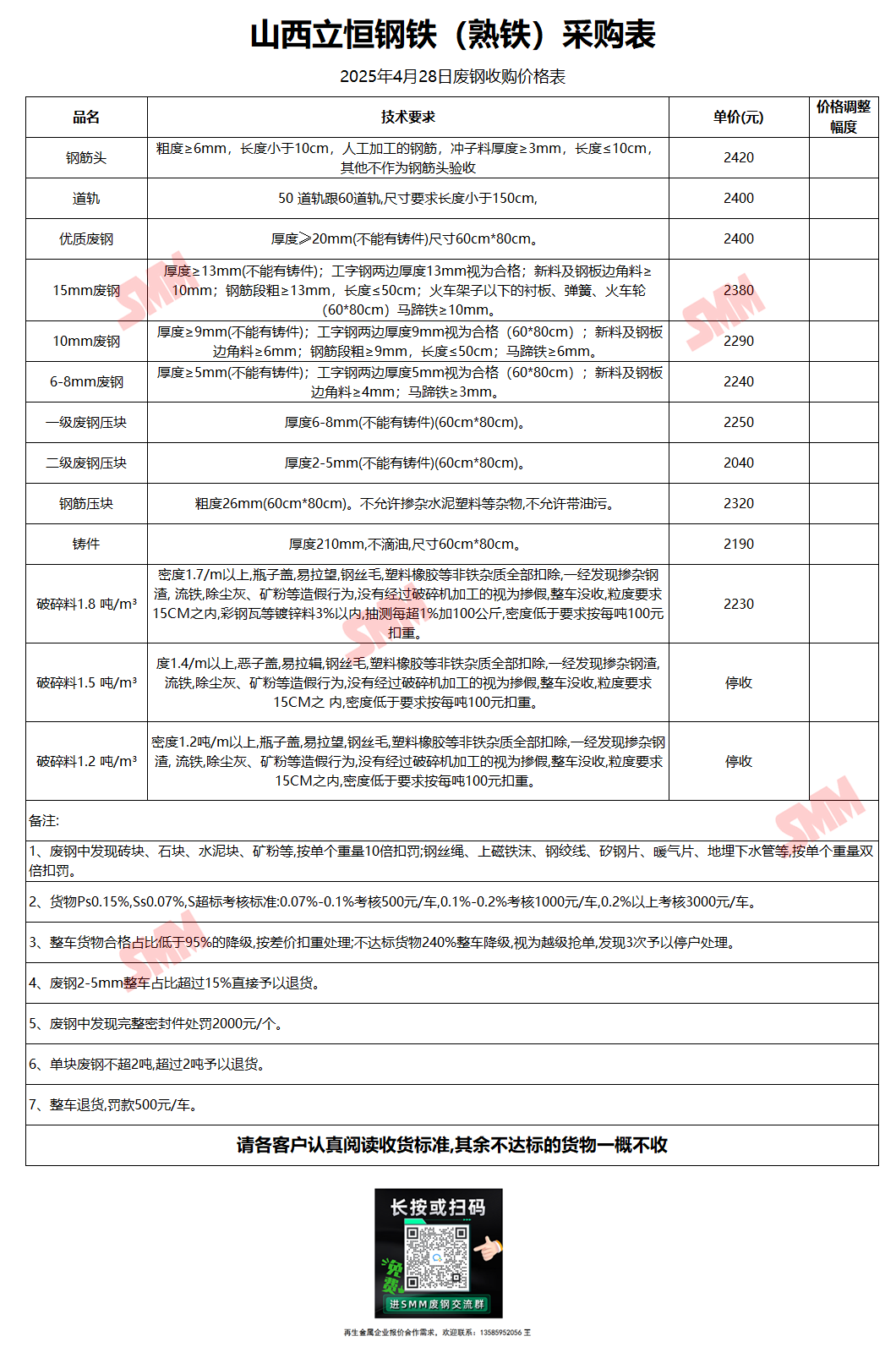 今日山西立恒钢铁 废钢收购报价已更新,有货的朋友欢迎联系我们!