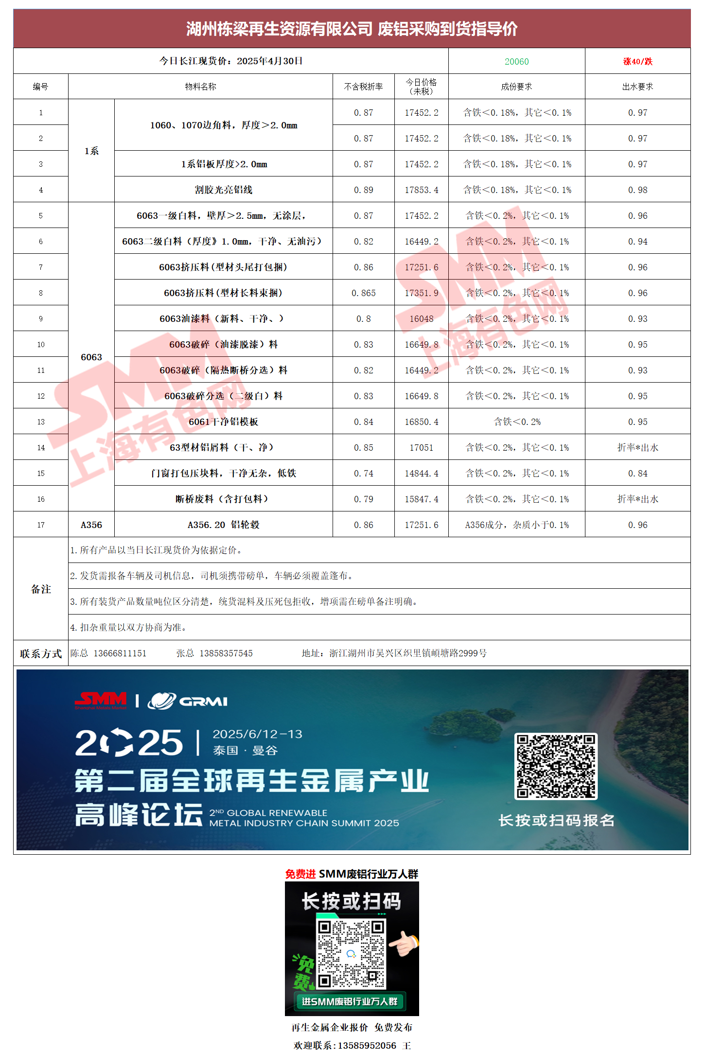 4月30日湖州栋梁再生 废铝采购报价