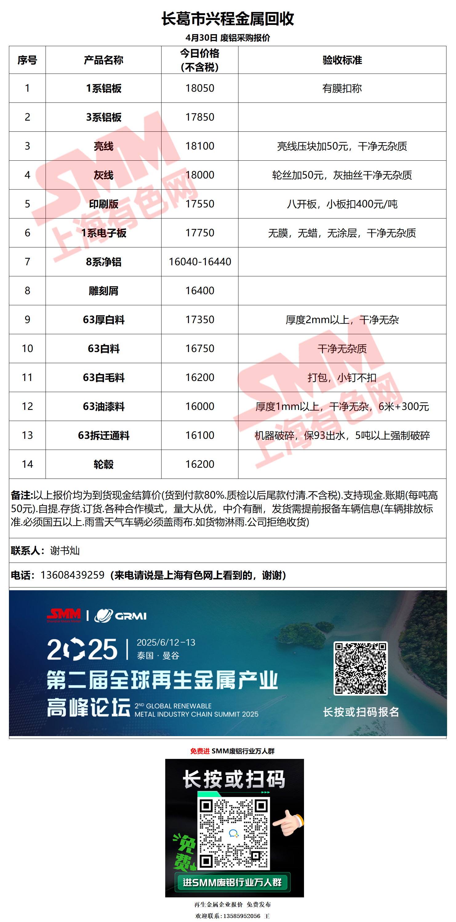 4月30日长葛兴程 废铝采购报价