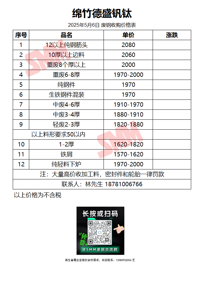 5月6日 绵竹德盛钒钛 废钢收购报价