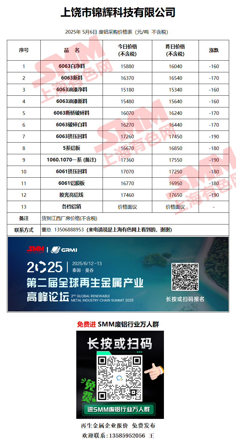 今日上饶锦辉 废铝采购报价已更新,有货的朋友欢迎联系我们!