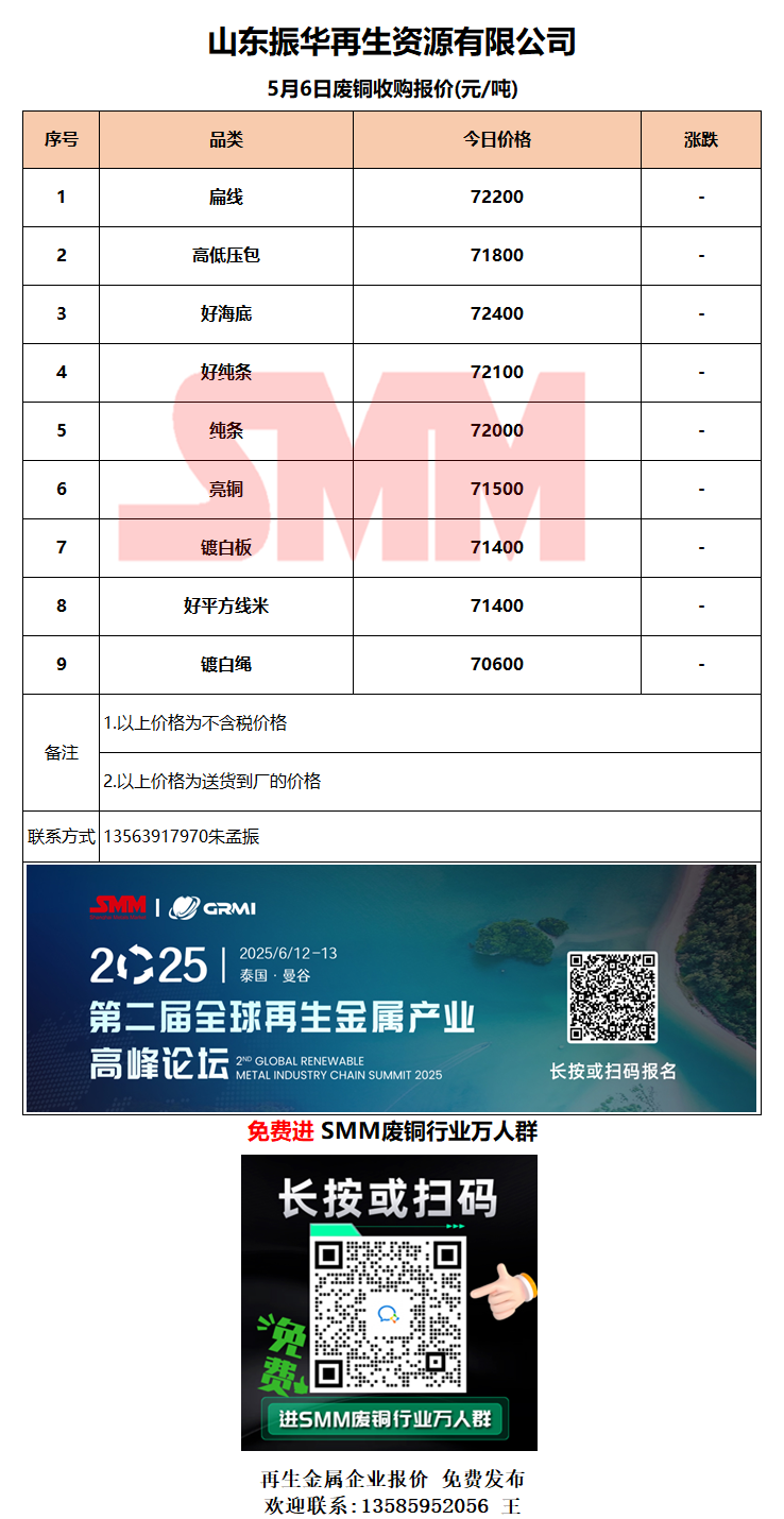 5月6日山东振华 废铜采购报价