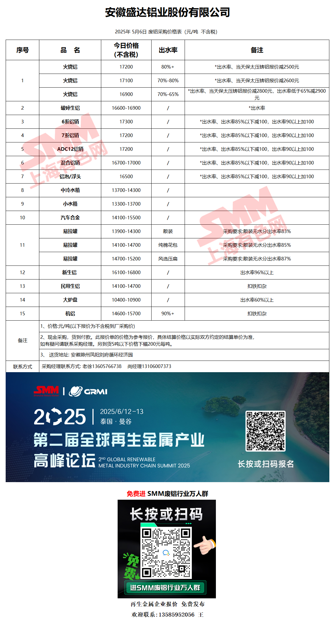 5月6日安徽盛达 废铝采购报价