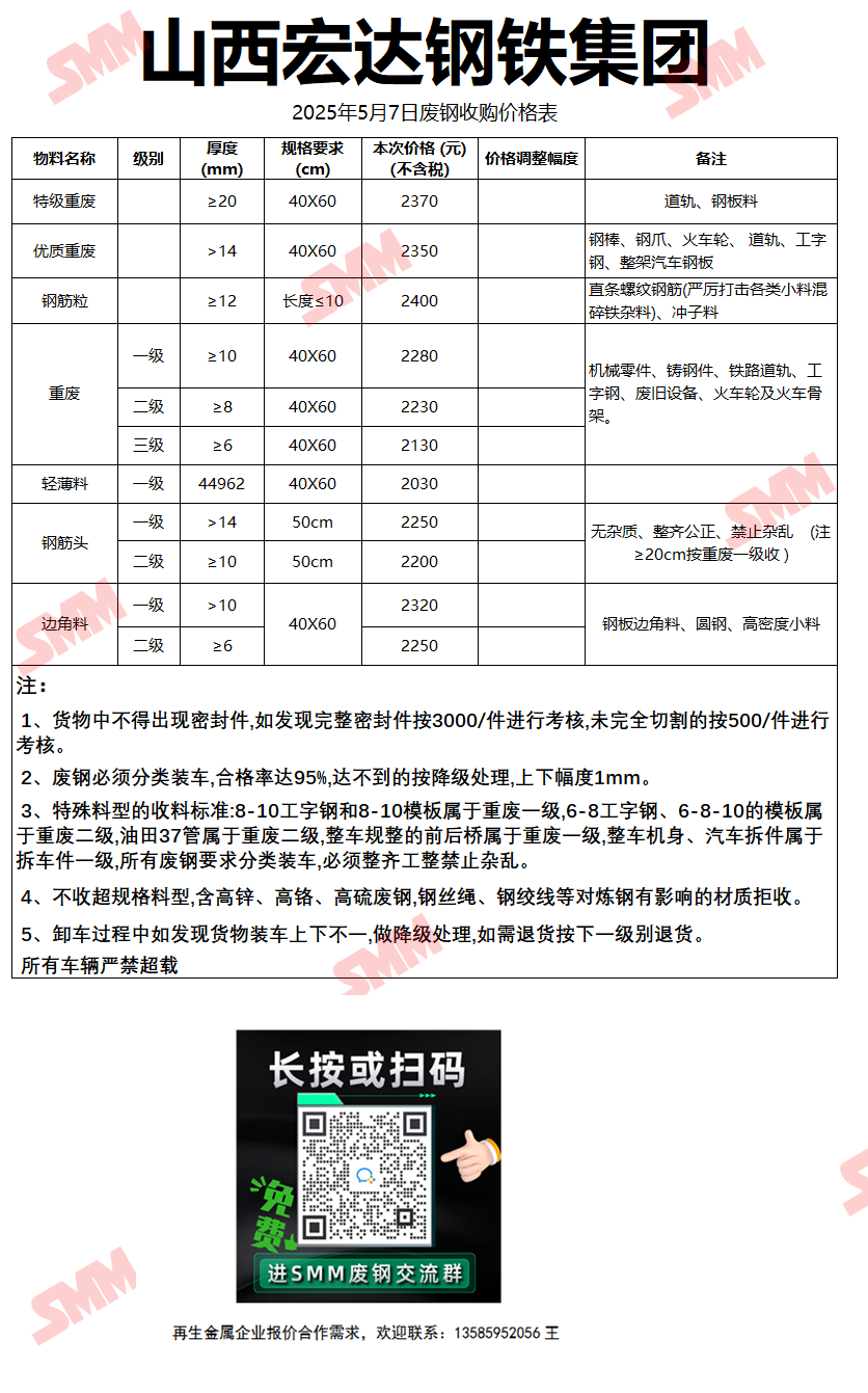 今日山西宏达钢铁 废钢收购报价已更新,有货的朋友欢迎联系我们!