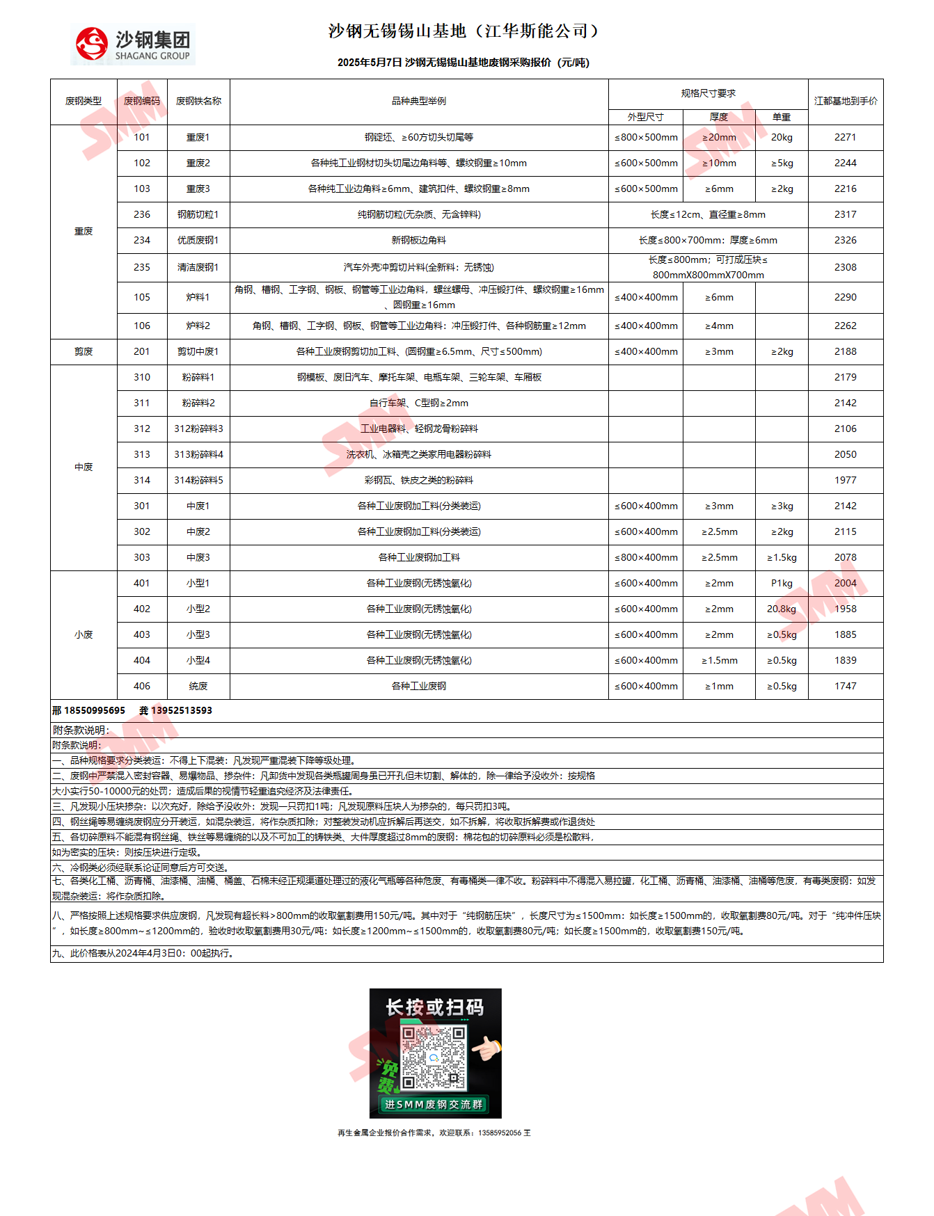 今日沙钢锡山基地 废钢采购报价已更新,有货的朋友欢迎联系我们!
